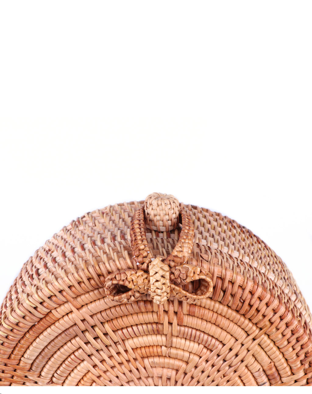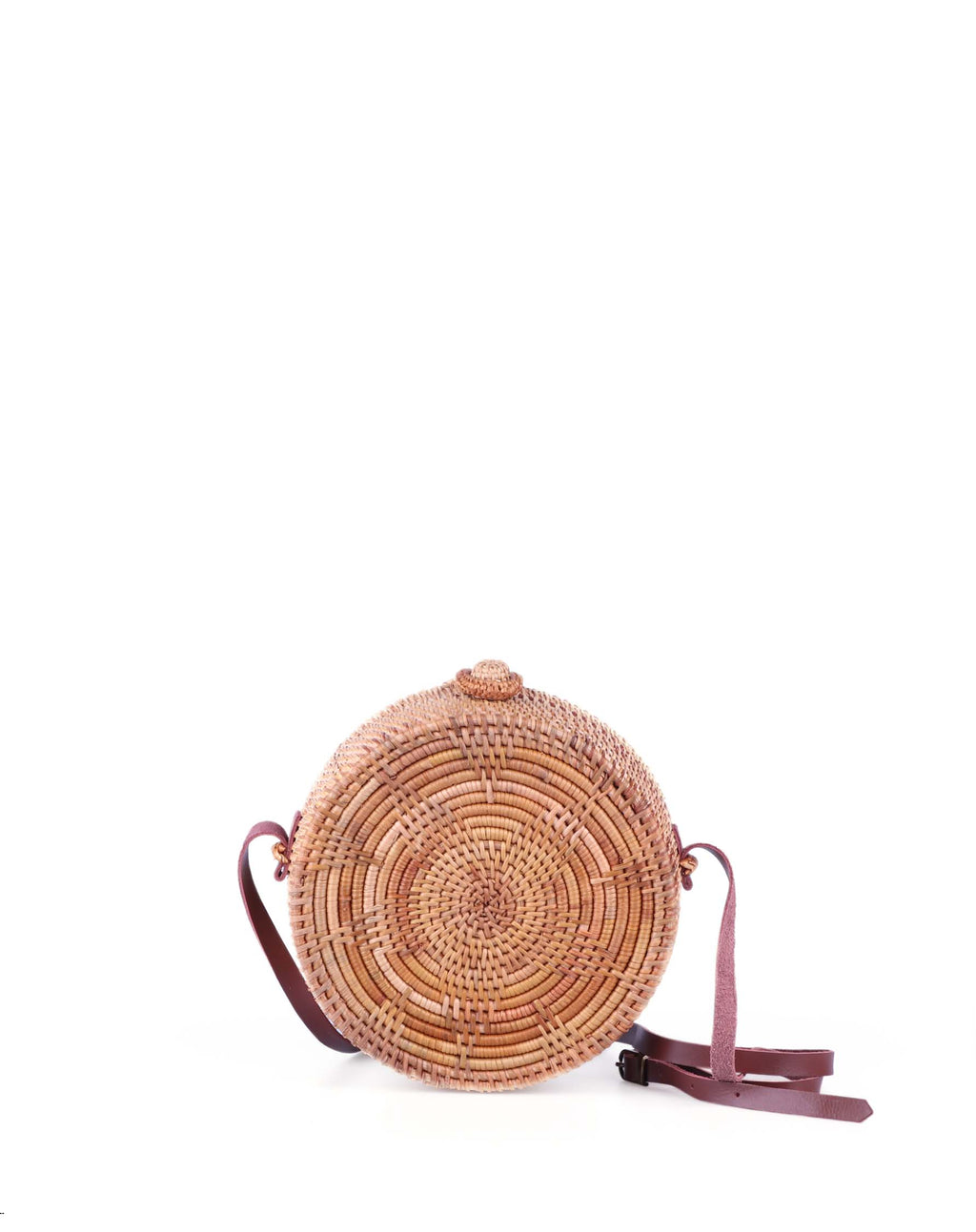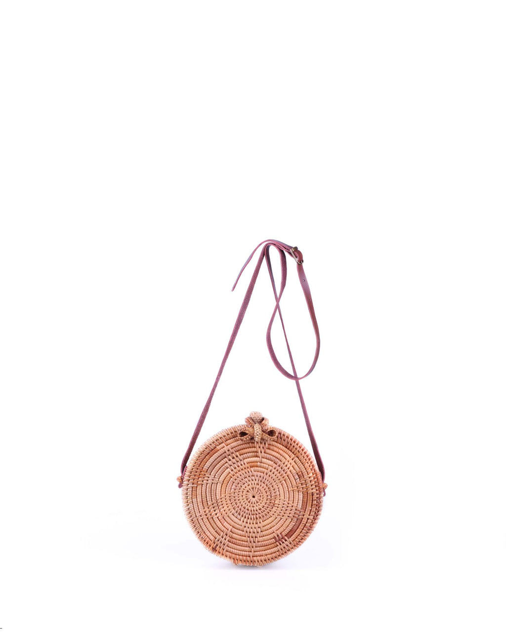 Ce sac rond est tissé à la main à partir de paille naturelle, et dispose d'une sangle en cuir brun qui est réglable pour s'adapter à votre corps. La fermeture traditionnelle assure un accès facile à tous vos effets personnels. Il peut y avoir de légères différences de couleur ou de taille entre la description annoncée et le sac que vous recevez, mais cela ne fait qu'ajouter au caractère unique de ce superbe sac.